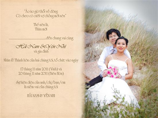 Bạn vui lòng cho Nam & Nhi biết khả năng tham dự của bạn ở buổi tiệc cưới nhé. Mẫu trả lời ở phía dưới sẽ giúp Nam & Nhi lúc về VN thuận tiện liên lạc với bạn. Nếu có địa chỉ cố định để NN gửi thiệp qua bưu điện thì càng tốt!